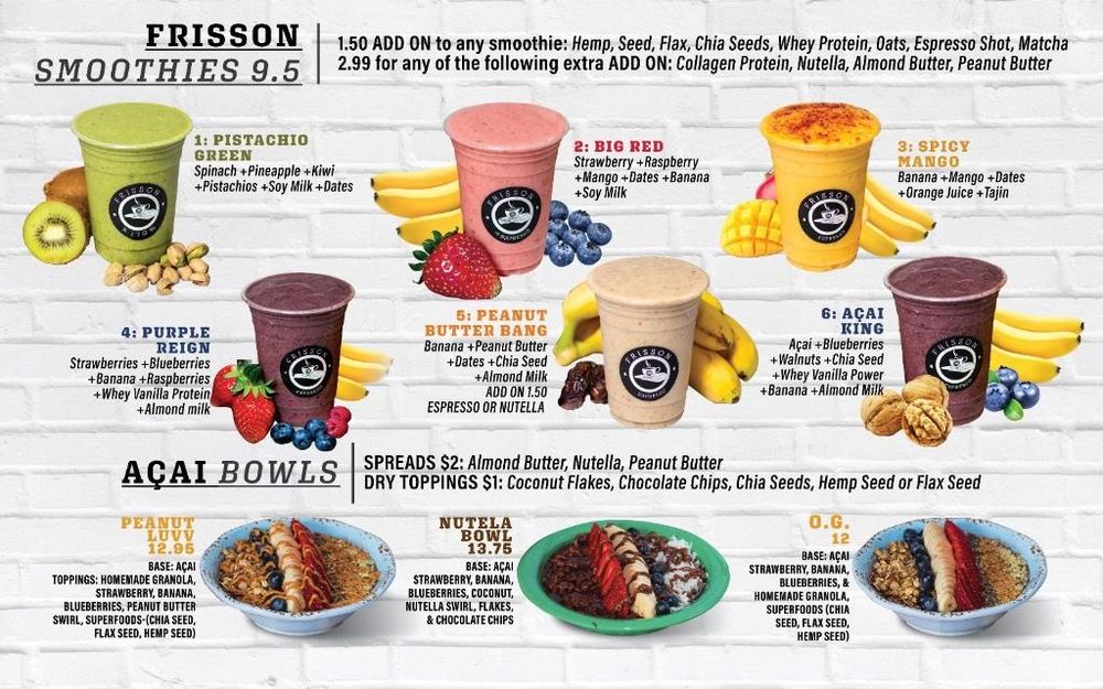 Frisson Espresso, located at 405 W 44th St New York, NY 10036, is a cozy coffee shop offering a wide range of drinks and food options. With a focus on quality and creativity, their menu includes unique items like O.G Acai Bowls, vegan smoothies, and specialty hot drinks like the Hot Espresso blend. Customers rave about the attention to detail in each cup and the friendly service provided by the staff. The ambiance is described as chill and friendly, perfect for enjoying a relaxed cup of coffee or tea. Frisson Espresso also offers delivery, takeout, and catering services, making it a convenient spot for coffee lovers on the go. Be sure to stop by and experience the artistic and flavorful offerings at Frisson Espresso.